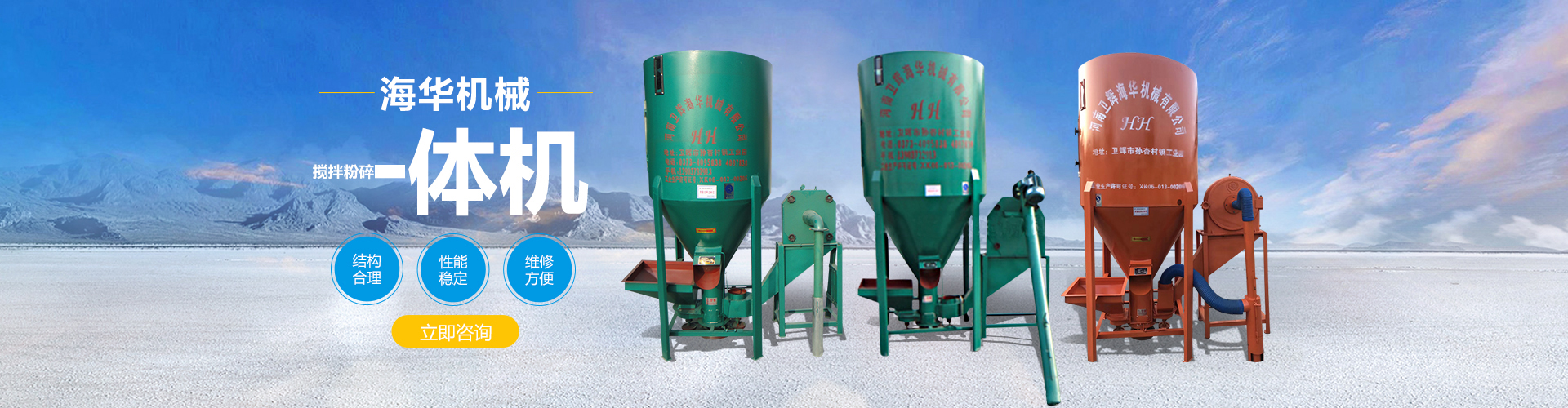 衛輝市海華機械有限公司專業從事料塔料線、飼料攪拌機等方面的研發廠家,主要生產銷售散裝料塔、不銹鋼攪拌機、臥式攪拌機、小型飼料粉碎機、顆粒機、混合機等飼料機械設備。